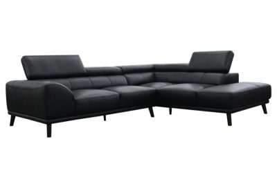 Urban Leather 2Seater Lounge W/ RHF Chaise- Black