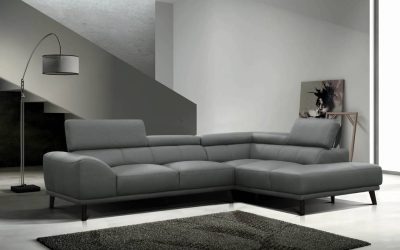 Urban Leather 2Seater Lounge W/ RHF Chaise- Mid Grey
