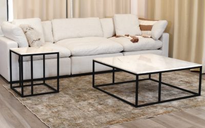 Susan 100cm Square Coffee Table White Marble Top w/ Black Base