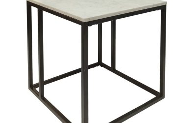 Susan 50cm Square Lamp Table White Marble Top w/ Black Base