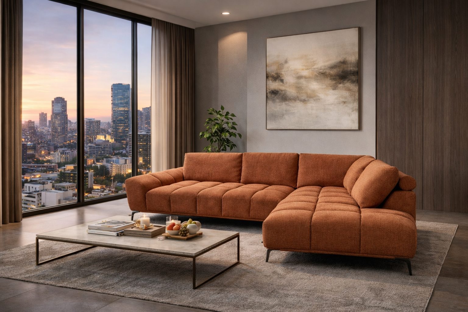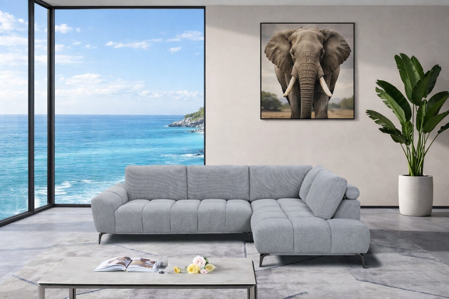 Designed for comfort and impact, the Adele Corner Sofa offers generous seating with supportive cushioning for laid-back lounging or entertaining guests. Its wide channel-tufted seat and slim black metal legs create a refined, modern look that elevates any interior.
