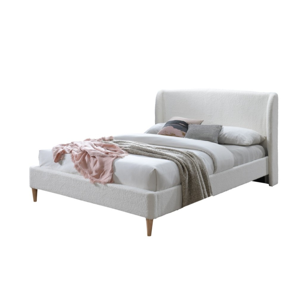 Stylish and modern design in soft pink upholstery with natural legs