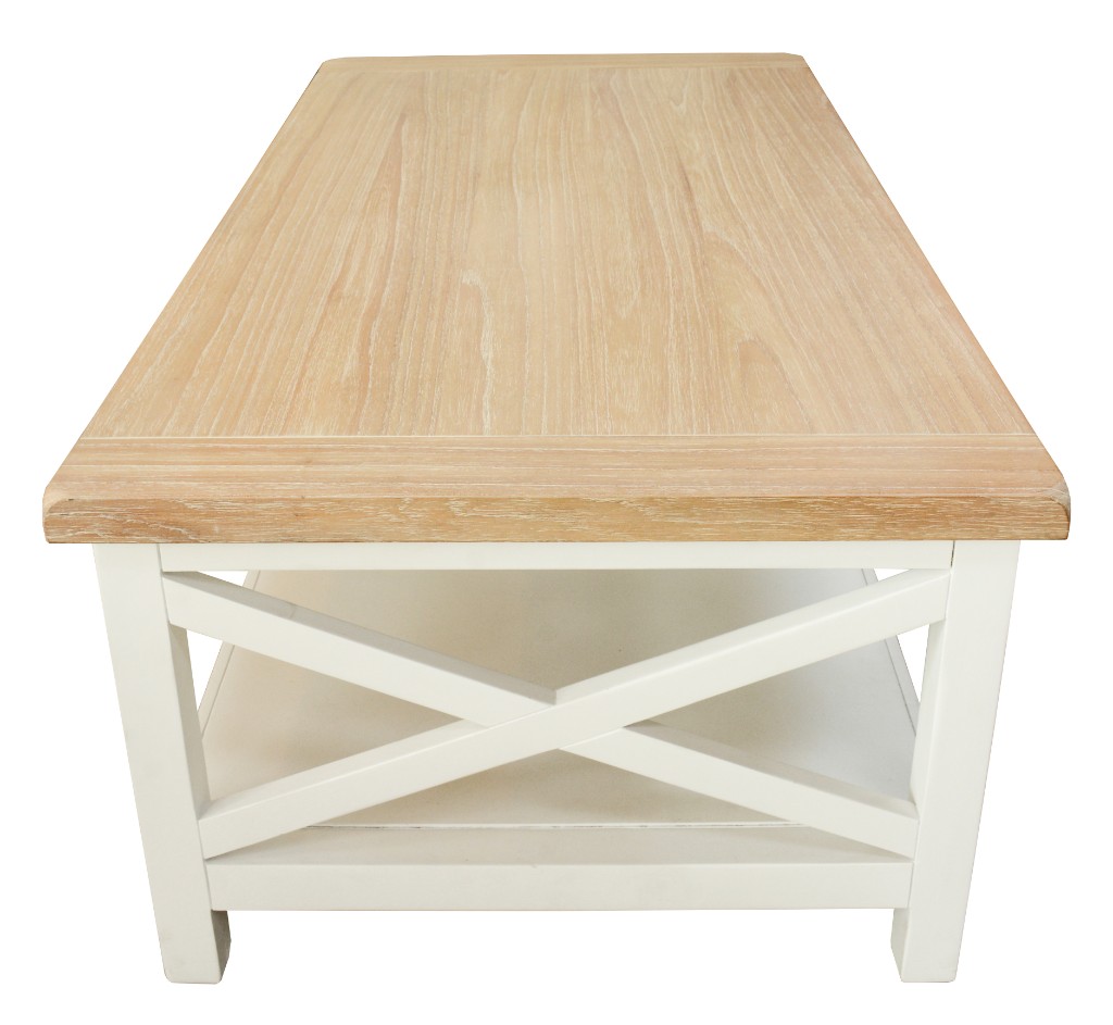 • Elegant Hampton-inspired design with a crisp white painted finish and contrasting natural top