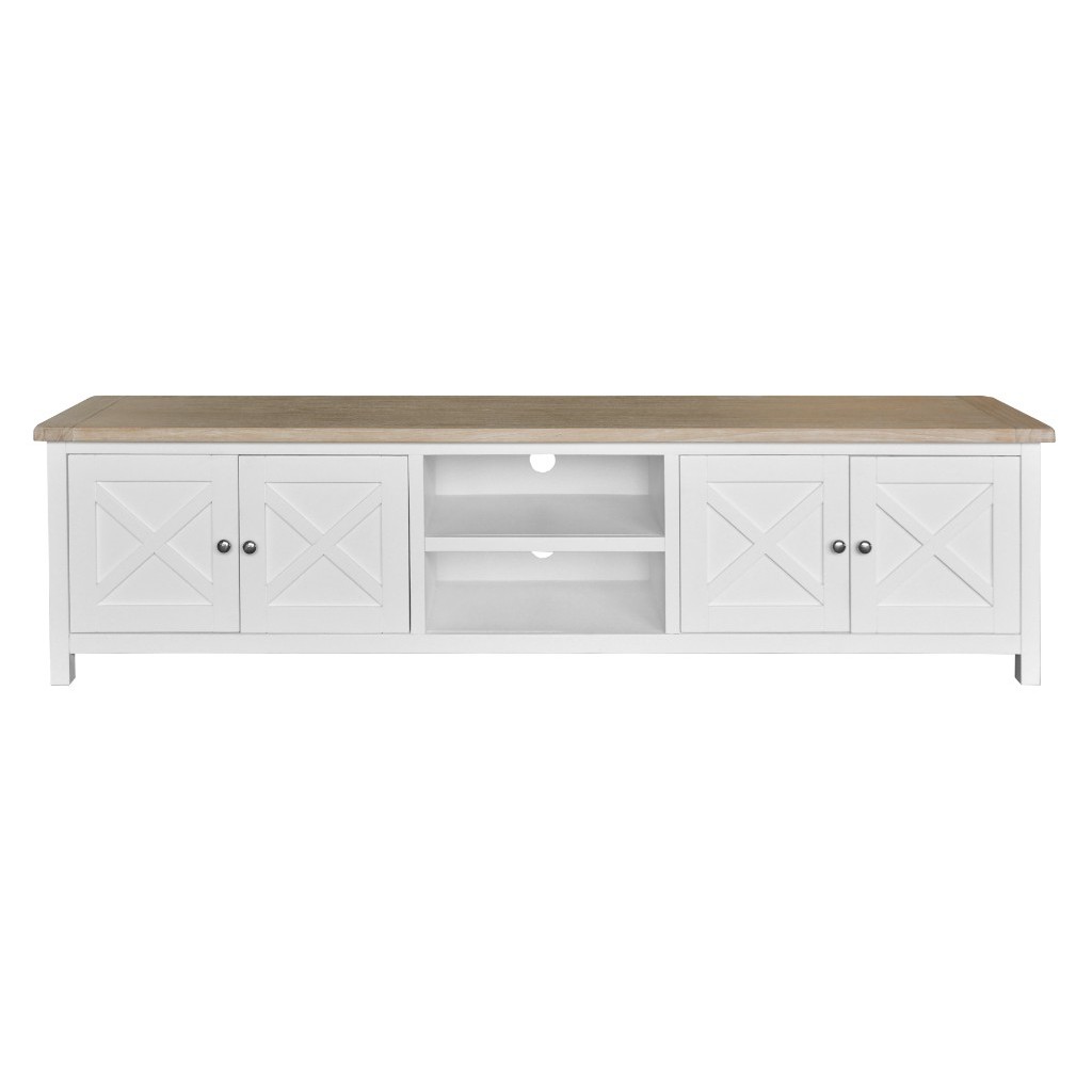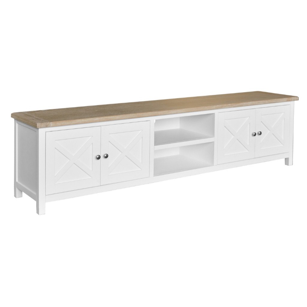 • Hampton-inspired design with white painted base and natural timber top