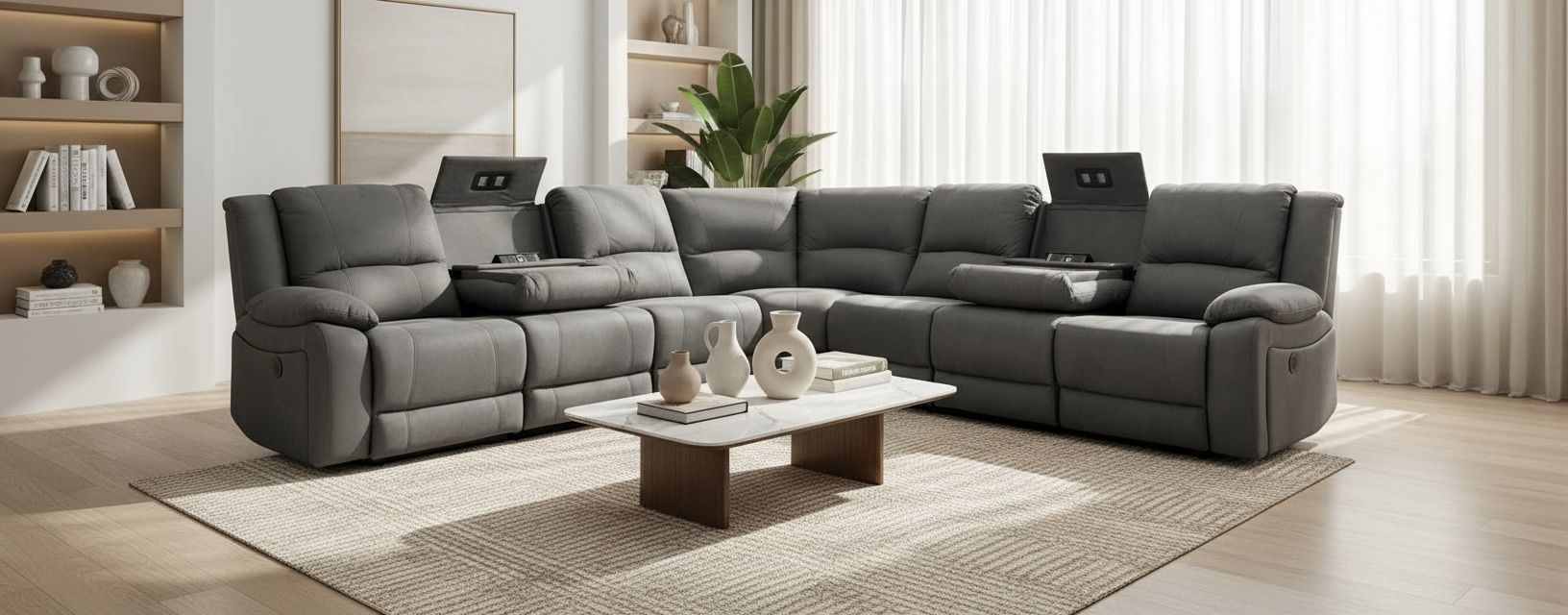 • Drop down tray with 240w plugs, 2 x USB ports, 2 x cup